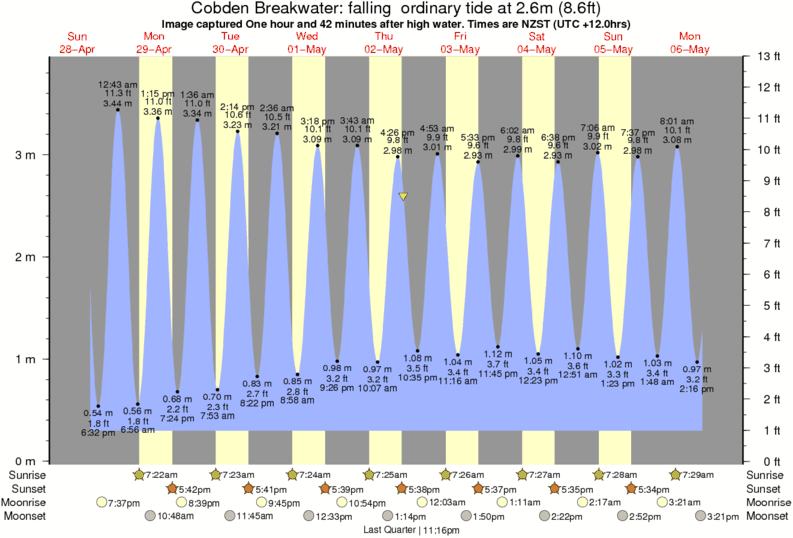 Image captured One hour and 42 minutes after high water (falling ordinary tide). Tide height was 2.6m (8.6 ft). Range 3.33m (10.9 ft). Toggle tide graph