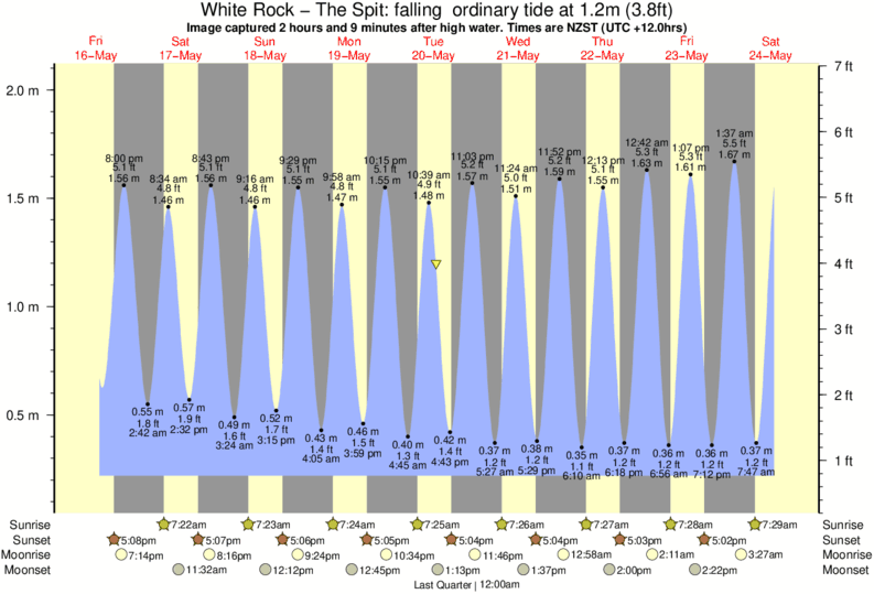 Image captured 2 hours and 9 minutes after high water (falling ordinary tide). Tide height was 1.2m (3.8 ft). Range 1.73m (5.7 ft). Toggle tide graph